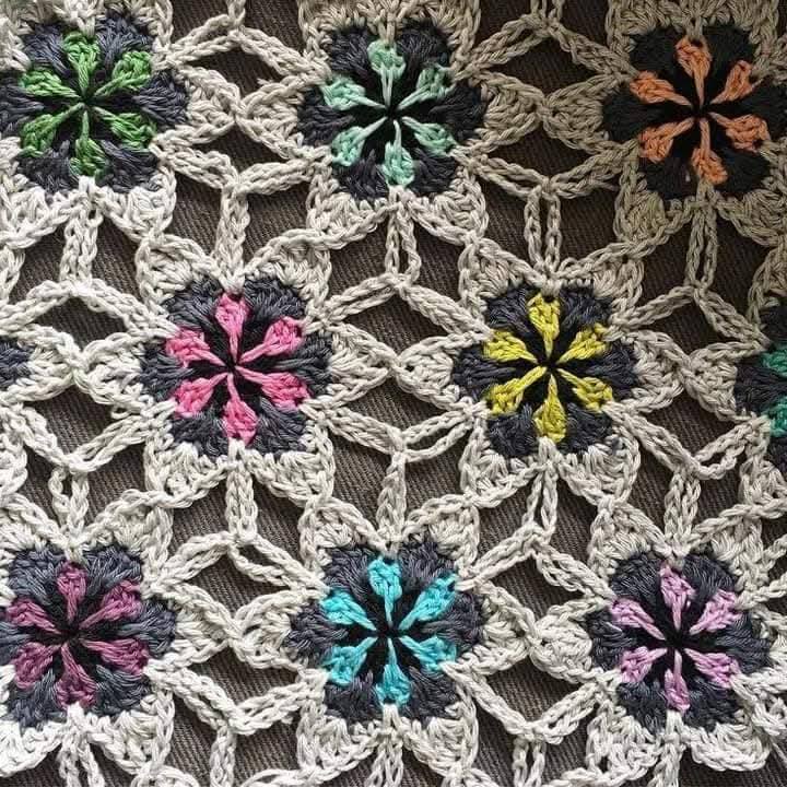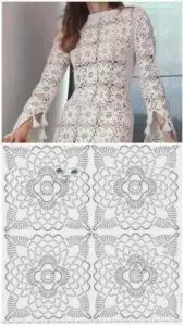 - Filet Crochê: trabalha com uma grade de quadradinhos abertos e fechados, formando desenhos e padrões geométricos sofisticados.