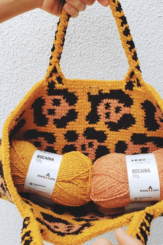 A elegância selvagem da estampa de onça ganha vida de forma única quando combinada com a habilidade artesanal do crochê. O fio Bocaina adiciona uma camada extra de luxo e conforto a essa bolsa, garantindo não apenas estilo, mas também funcionalidade e resistência ao desgaste cotidiano.