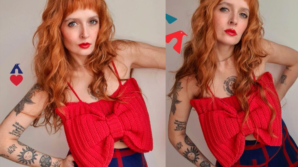 Exemplo dessa tendência é o Top Presente, uma peça que reflete a habilidade de combinar técnicas tradicionais de crochê com uma visão moderna. Desenhado pela artesã Carol Weiss, o top utiliza o fio Balloon na cor vermelha, simbolizando força e confiança, acompanhado de uma produção que traz uma vibe rock’n roll.