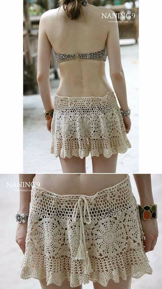 - Saias curtas de crochê: ideais para looks jovens e descontraídos.