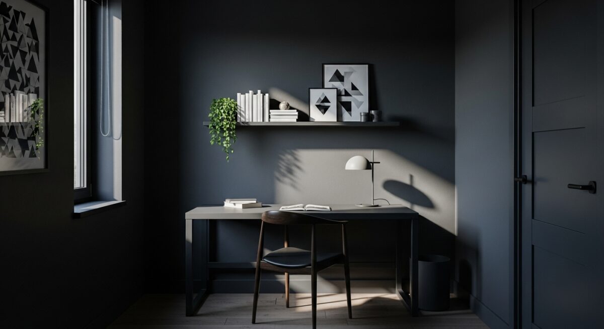 Verdade: Embora tons claros ampliem visualmente os espaços, isso não significa que cores escuras estão proibidas. Usadas com equilíbrio, elas criam profundidade, aconchego e sofisticação. Uma parede escura bem posicionada, por exemplo, pode valorizar móveis e destacar elementos decorativos.