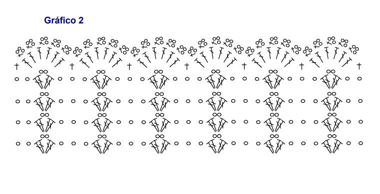 O acabamento do vestido envolve a aplicação de uma carreira de pontos altos combinada com ponto picô, de acordo com um segundo gráfico. Esta etapa oferece um detalhe texturizado à margem do vestido, além de garantir um caimento charmoso e trabalhado.