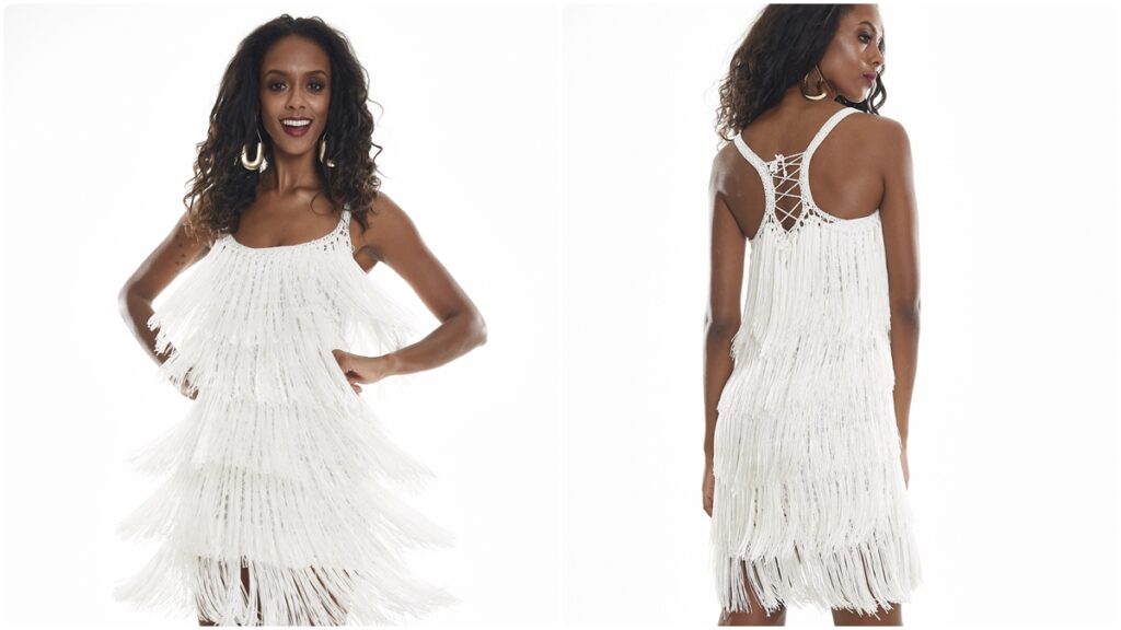 O acabamento é essencial para garantir que o vestido fique perfeitamente ajustado e elegante. As instruções detalhadas devem ser seguidas à risca para que as franjas, cavas e o cadarço proporcionem o visual desejado. O uso de franjas incrementa a peça, adicionando dinamismo e movimento, características que atraem tanto pela forma como pelo conceito.