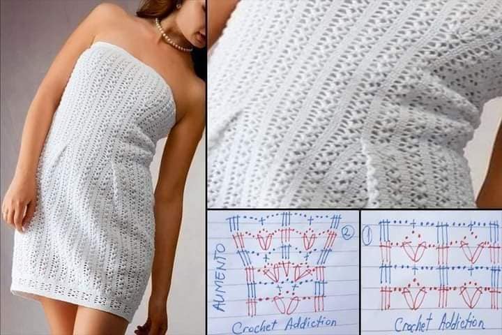 - Ponto rede: cria leveza e transparência, ideal para partes do vestido como mangas ou decotes.