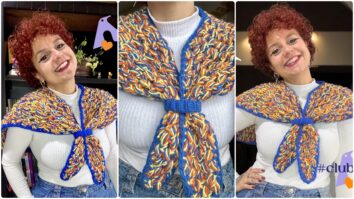 - Se necessário, ajuste a tensão dos pontos para que o xale não fique muito rígido ou frouxo.